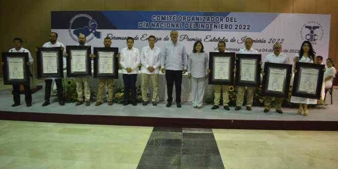 El Centro de Convenciones Tabasco 2000 se convirtió en la catedral de la ingeniería, donde el gobernador Carlos Manuel Merino Campos entregó los Premios Estatales de Ingeniería 2022 a ocho destacados profesionistas de las diversas ramas.