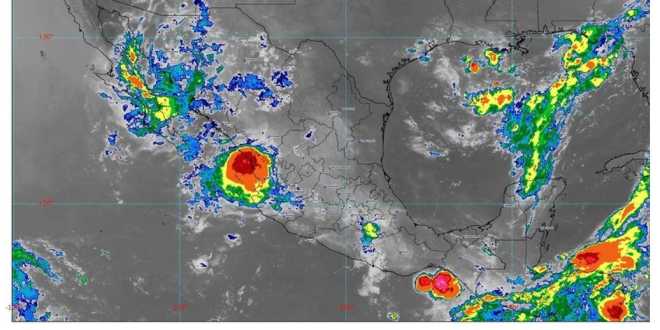 Para este lunes se pronostican lluvias muy fuertes (de 50 a 75 milímetros [mm]) en regiones de Chiapas, Chihuahua, Durango, Estado de México, Guerrero, Jalisco, Michoacán, Morelos, Nayarit, Oaxaca, Puebla, Sinaloa y Sonora; fuertes (de 25 a 50 mm) en localidades de Campeche, Ciudad de México, Colima, Quintana Roo, Tlaxcala y Yucatán; intervalos de chubascos (de 5 a 25 mm) en Guanajuato, Hidalgo, Tabasco, Veracruz y Zacatecas, y lluvias aisladas (de 0.1 a 5 mm) en Aguascalientes, Coahuila, Nuevo León, Querétaro, San Luis Potosí y Tamaulipas.