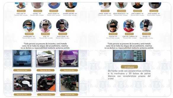 De las personas detenidas por la Policía Estatal, 28 fueron puestas a disposición del Juez Calificador y 14 ante la Fiscalía General del Estado (FGE), asimismo fueron recuperados 3 vehículos y 3 motocicletas que contaban con reporte de robo y una motocicleta asegurada.