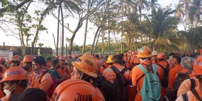 Más de un centenar de trabajadores se manifiestan en estos momentos frente a la Refinería Olmeca de Dos Bocas, en denuncia de que la empresa COIMSA de Samsung se niega a liquidarlos conforme a la Ley Federal del Trabajo.
