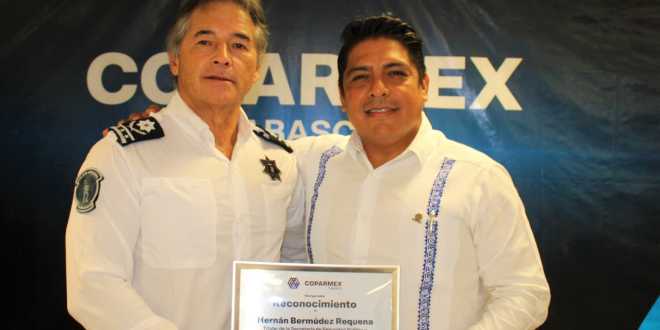 “Reconocemos a Hernán Bermúdez Requena, titular de la Secretaría de Seguridad y Protección Ciudadana por su entrega y compromiso para contribuir a la paz y a la tranquilidad de Tabasco” dijo Zúñiga Lozano, al entregar un reconocimiento al funcionario policial.