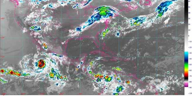 Se pronostica, para el Pacífico Centro, ambiente matutino de fresco a templado con cielo medio nublado y bancos de niebla en zonas serranas, cálido con cielo nublado al atardecer, descargas eléctricas y posibles granizadas en zonas de lluvia y viento de dirección variable de 15 a 30 km/h en la región, con rachas de 50 a 60 km/h y oleaje de 1.5 a 2.5 m de altura en las costas de Colima, Jalisco y Nayarit.