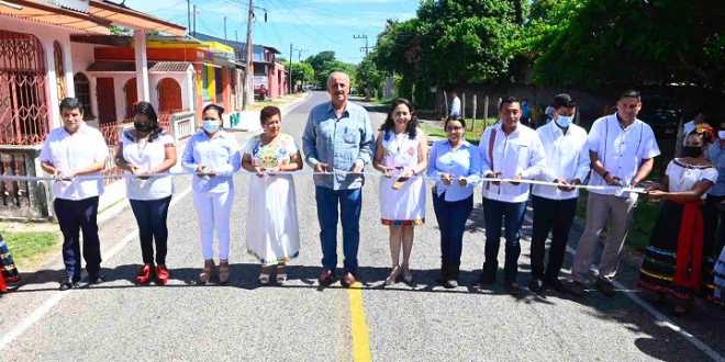 El mandatario culminó su gira de trabajo con la inauguración de la pavimentación de 4 mil 400 metros cuadrados de pavimentación con concreto hidráulico de las calles 1º y 10 de Mayo de la villa Puerto Ceiba.
