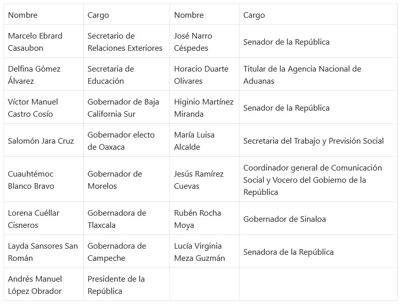 Referente a las y los servidores públicos que no asistieron al evento celebrado el 26 de junio de 2022 en el estado de Coahuila, la Comisión de Quejas y Denuncias del INE declaró improcedente la emisión de tutela preventiva, al tener certeza de que las 15 personas que se enuncian a continuación no participaron en dicho evento ni se cuenta con elementos probatorios de que hayan participado directa o indirectamente en su organización o realización, a saber: