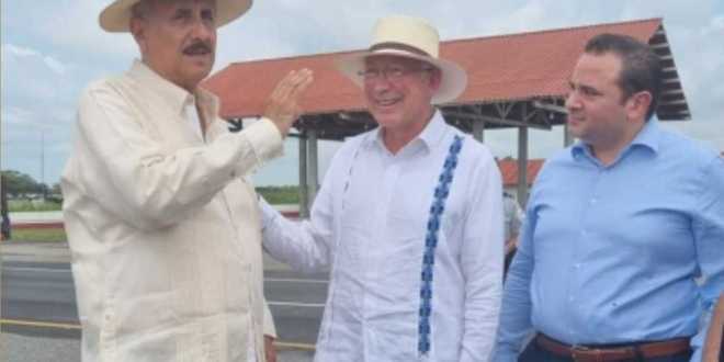 El gobernador Carlos Manuel Merino Campos y el embajador Ken Salazar, supervisaron los puestos de control de migración que opera la Guardia Nacional en la zona aledaña al Puente Tonalá.