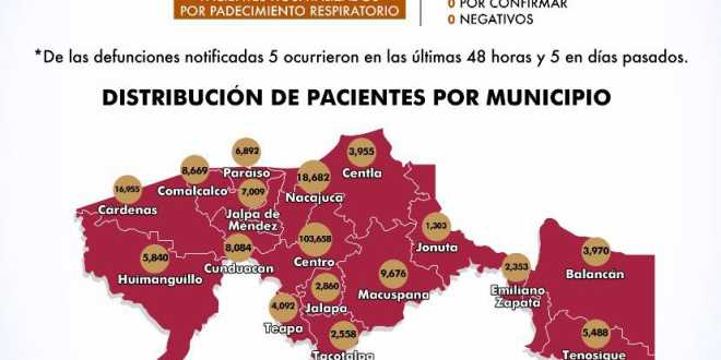 Salud señaló que en lo que va de la emergencia sanitaria, Tabasco acumuló 212 mil 44 casos confirmados de la enfermedad, además de 6 mil 309 fallecimientos.