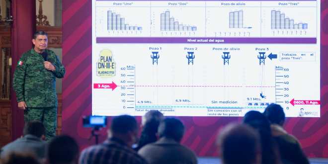 “Los niveles son óptimos, son importantes. Nosotros esperamos que el día de hoy en el pozo 2, que estamos llegando ya a niveles a donde pueden entrar los rescatistas, eso nos lo irá indicando la empresa Mimosa y la Secretaría de la Defensa que encabeza, tanto el rescate a través de los buzos como los rescatistas, podamos apoyarnos seguramente con nuestros mineros voluntarios que, muchos de ellos son familiares de los que se encuentran en la mina”, apuntó.
