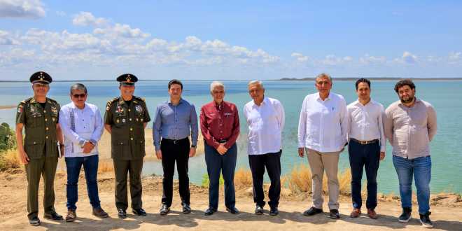 También lo acompañaron, el director general de la Comisión Nacional del Agua, Germán Martínez Santoyo; el secretario de Gobernación, Adán Augusto López Hernández; el secretario de la Defensa Nacional, Luis Cresencio Sandoval González; el subsecretario de Egresos de la Secretaría de Hacienda y Crédito Público, Juan Pablo de Botton Falcón; el coordinador general de Comunicación Social y vocero de la Presidencia, Jesús Ramírez Cuevas; el director general del Banco Nacional de Obras y Servicios Públicos, Jorge Mendoza Sánchez; el director general del Organismo de Cuenca del Río Bravo, Luis Carlos Alatorre Cejudo; el subdirector general de Agua Potable, Drenaje y Saneamiento de la Conagua, Felipe Zataráin Mendoza y el gerente de Aguas Superficiales e Ingeniería de Ríos de Conagua, Jesús Heriberto Montes Ortiz.