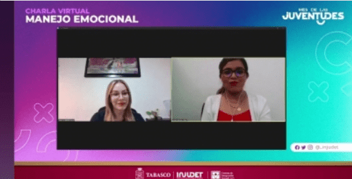 En el marco del Mes de las Juventudes 2022, este jueves el Instituto de la Juventud y el Deporte de Tabasco (Injudet), realizó la charla virtual “Manejo Emocional”, impartida por la doctora Juana del Carmen del Ángel Balderas de la asociación Centros de Integración Juvenil A.C.