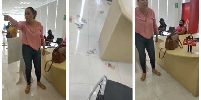 De acuerdo a testigos, los hechos sucedieron el pasado 23 de agosto, y la agresiva mujer había acudido al banco a que le cambiaran 5 mil pesos por billetes de baja denominación, sin aclarar con exactitud las razones del enojo de la mujer.