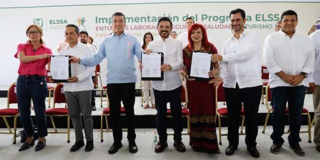 La Secretaría de Economía, la Concanaco-Servytur, Fonatur y los gobiernos de Campeche y Quintana Roo firmaron el Acuerdo de la Implementación del programa Entornos Laborales Seguros y Saludables (ELSSA); suscribieron como testigos de honor el IMSS y el gobierno de Chiapas