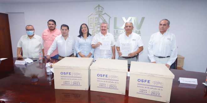 En ese sentido, el fiscal Alejandro Álvarez manifestó a los diputados que como resultado del ejercicio de la función sustantiva del OSFE y en cumplimiento a la normatividad en la materia, se da cuenta al Congreso de los Informes Técnicos, Financieros y de Resultados de las Cuentas Públicas del Ejercicio Fiscal 2021, de los tres poderes, órganos autónomos y 17 ayuntamientos del Estado de Tabasco.