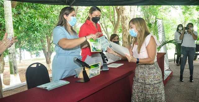 La presidenta del Sistema DIF Tabasco también entregó reconocimientos a todas las integrantes de los Voluntariados de las dependencias del Gobierno del Estado por su labor desempeñada durante la estrategia “Reciclar es ayudar”.