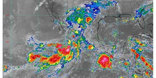 El Servicio Meteorológico Nacional vigila dos zonas de baja presión localizadas en el océano Pacífico; la primera, con 90 por ciento (%) de probabilidad para evolucionar a ciclón tropical en el pronóstico a 48 horas, se localizó aproximadamente a 470 kilómetros (km) al suroeste de Cabo Corrientes, Jalisco, y se desplaza hacia el noroeste a 16 km/h.