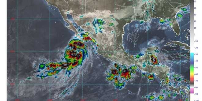 Para hoy, viernes, se pronostican lluvias puntuales torrenciales (de 150 a 250 milímetros [mm]) en regiones de Chiapas y Oaxaca; intensas (de 75 a 150 mm) en zonas de Baja California Sur, Guerrero, Tabasco y Veracruz; muy fuertes (de 50 a 75 mm) en áreas de Campeche, Chihuahua, Durango, Estado de México, Jalisco, Michoacán, Morelos, Nayarit, Puebla, Quintana Roo y Sinaloa; fuertes (de 25 a 50 mm) en sitios de Baja California, Ciudad de México, Coahuila, Colima, Nuevo León, San Luis Potosí, Sonora, Tamaulipas, Yucatán y Zacatecas; intervalos de chubascos (de 5 a 25 mm) en Hidalgo, Querétaro y Tlaxcala, y lluvias aisladas (de 0.1 a 5 mm) en Aguascalientes y Guanajuato.