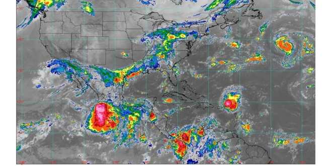 Para hoy, domingo, se pronostican lluvias puntuales torrenciales (de 150 a 250 milímetros [mm]) en Guerrero y Michoacán; intensas (de 75 a 150 mm) en Coahuila, Colima, Hidalgo, Jalisco, Nuevo León, Oaxaca, Puebla y Veracruz; muy fuertes (de 50 a 75 mm) en Chiapas, Chihuahua, Durango, Nayarit, San Luis Potosí, Sinaloa y Tamaulipas; fuertes (de 25 a 50 mm) en Campeche, Estado de México, Guanajuato, Morelos, Querétaro, Tabasco, Tlaxcala y Zacatecas; intervalos de chubascos (de 5 a 25 mm) en Baja California, Baja California Sur, Ciudad de México, Quintana Roo, Sonora y Yucatán, así como aisladas (de 0.1 a 5 mm) en Aguascalientes.