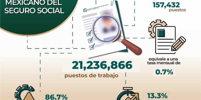 Al 31 de agosto de 2022, se tienen registrados ante el Instituto Mexicano del Seguro Social (IMSS) 21,236,866 (veintiún millones doscientos treinta y seis mil ochocientos sesenta y seis) puestos de trabajo; de éstos, el 86.7% (ochenta y seis punto siete por ciento) son permanentes y el 13.3% (trece punto tres por ciento) son eventuales.