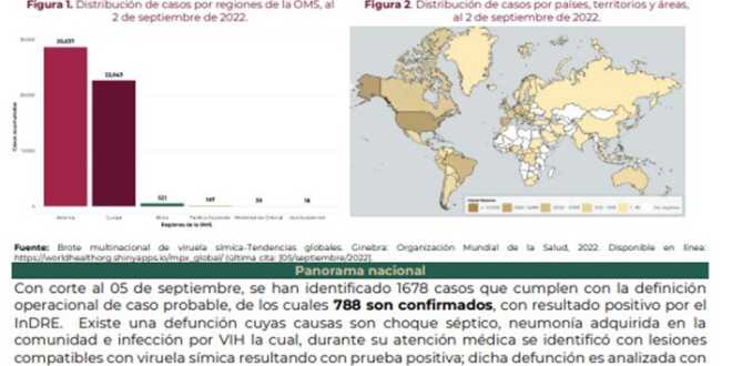 El documento disponible en viruela.salud.gob.mx detalla que en el periodo referido se identificaron en total mil 678 personas que cumplen la definición operacional de caso probable, de los cuales 788 están confirmados, 294 en estudio y 596 descartados mediante prueba de laboratorio.