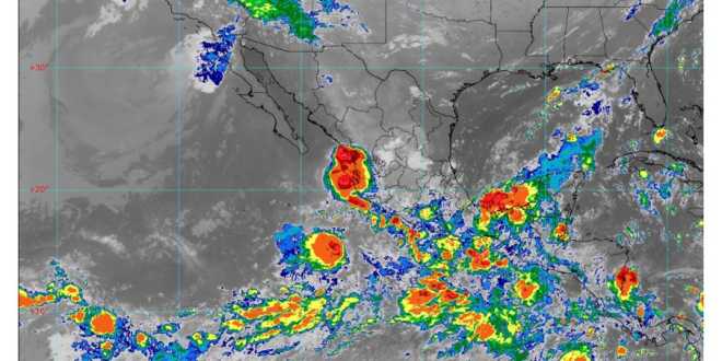 De acuerdo con las previsiones meteorológicas, para este día un canal de baja presión extendido sobre el sureste de la República Mexicana y la Península de Yucatán, y la proximidad de la vaguada monzónica a las costas del Pacífico Sur mexicano, ocasionarán lluvias puntuales torrenciales (de 150 a 250 milímetros [mm]) en regiones de Chiapas y Tabasco; intensas (de 75 a 150 mm) en zonas de Campeche, Guerrero, Oaxaca, Veracruz y Yucatán; muy fuertes (de 50 a 75 mm) en áreas de Puebla, y fuertes (de 25 a 50 mm) en sitios de Quintana Roo.