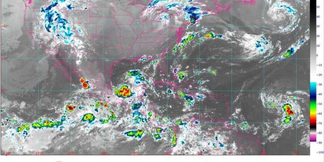 Las condiciones atmosféricas serán generadas por un canal de baja presión extendido sobre el Golfo de México hasta el sureste del país, en interacción con la vaguada monzónica, que se extenderá muy próxima a las costas del Pacífico Sur Mexicano, una zona de baja presión frente a la costa de Guerrero con probabilidad para desarrollo ciclónico y por la entrada de humedad del Mar Caribe, así como un canal de baja presión que se extenderá a lo largo de la Sierra Madre Occidental hasta el centro del territorio mexicano, en combinación con el ingreso de humedad del Océano Pacífico e inestabilidad en niveles altos de la atmósfera y por un frente frío que continuará muy cerca del noreste del país.