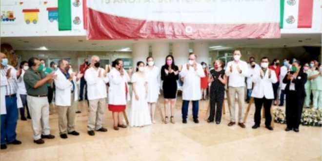 Al acto cívico acudieron los exdirectores Yrma del Carmen Bocanegra Broca, Yanet Pérez Méndez, María Teresa Hernández Marín, Germán Arturo Corzo Ríos, así como la extitulares de las unidades de enfermería Rosa Martha Rodríguez Meza, Lucia María González Soberano, Tirza Gabriela Noh Pasos, y la actual encargada de esta área, Dorca Martínez Hernández.