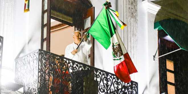 En medio de una incesante lluvia, esta noche el gobernador Carlos Manuel Merino Campos dio el tradicional Grito de Independencia, conmemorativo del 212 aniversario del inicio del movimiento insurgente que concedió patria, justicia y libertad al pueblo mexicano.