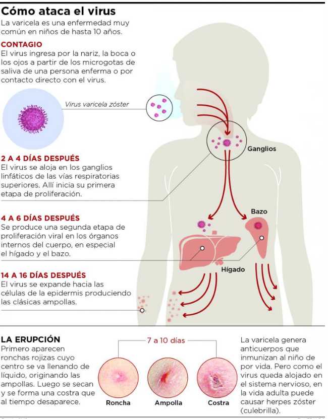 Sin embargo, el virus puede quedar latente en el cuerpo para reactivarse posteriormente, pero esta vez en forma de herpes zóster.