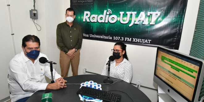 Ante los micrófonos, comentó que “la idea de radio UJAT no es ser una radio totalmente universitaria o que la escuchen sólo los universitarios, la idea es ser una alternativa que tengan los tabasqueños respecto de las distintas emisoras comerciales que existen y que cumplen un objetivo”.
