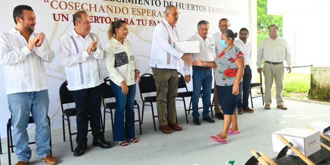 Como parte del Programa de Rescate a la Producción de la Canasta Básica para la Autosuficiencia Alimentaria «Cosechando Esperanza», el gobernador Carlos Manuel Merino Campos entregó paquetes productivos de huertos familiares en el municipio de Nacajuca.