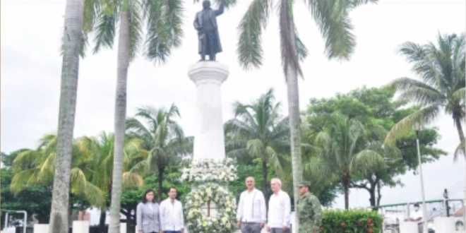 En un acto conmemorativo realizado en el monumento erigido en honor al héroe independentista, en el parque que lleva su nombre, pueblo y gobierno rindieron homenaje a quien hizo de las leyes el instrumento para obligar a la constancia y patriotismo, y moderar la opulencia y la indigencia.