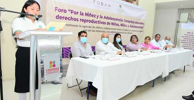 A fin de contribuir a la erradicación del embarazo adolescente generando un espacio de análisis y diálogo colectivo, este viernes el Gobierno del Estado a través del Instituto Estatal de las Mujeres (IEM), realizó en el plantel número 52 del Colegio Nacional de Educación Profesional Técnica (CONALEP) del municipio de Cárdenas, el “foro por la niñez y la adolescencia: derechos sexuales y derechos reproductivos de niñas, niños y adolescentes”.