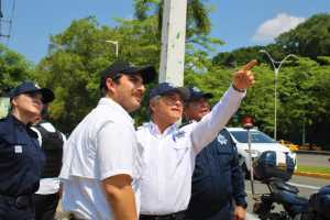 Hernán Bermúdez encabezó un recorrido junto con del comisionado de la Policía Estatal, José del Carmen Castillo y la directora de la PEC, Julissa Riveroll