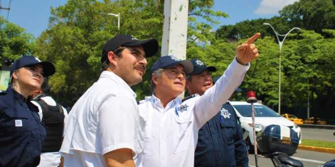 Hernán Bermúdez encabezó un recorrido junto con del comisionado de la Policía Estatal, José del Carmen Castillo y la directora de la PEC, Julissa Riveroll