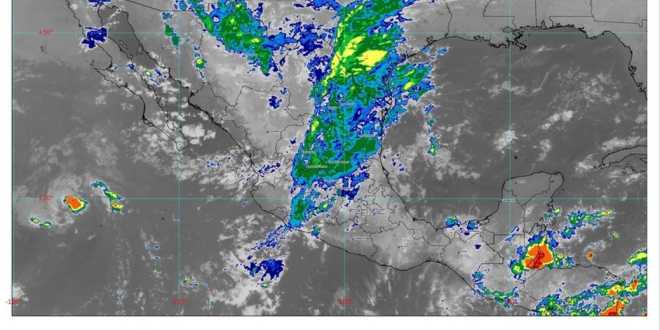 Se pronostica, para el Pacífico Centro, cielo nublado la mayor parte del día, ambiente fresco y bancos de niebla en zonas montañosas durante la mañana, ambiente cálido por la tarde, viento de dirección variable de 10 a 25 km/h. En zonas con lluvia se esperan descargas eléctricas y rachas de viento de 40 km/h.