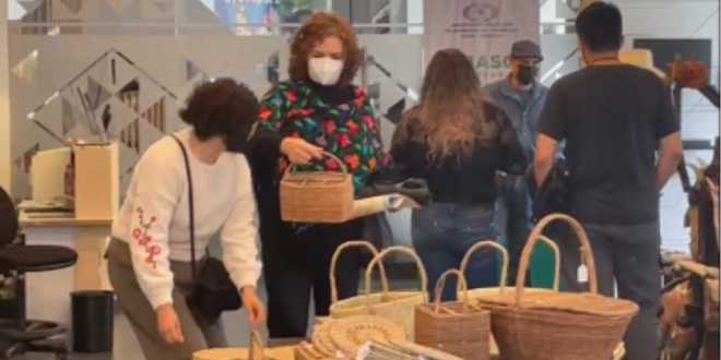 “Estamos aquí en Punto México en las instalaciones de la Secretaría de Turismo en Polanco presentado los trabajos que hacemos con el tallo del lirio acuático, el corazón de cañitas y el espadañal cada uno de estos artículos se están exponiendo en este lugar y a precios accesibles para que nos visiten y compren lo que necesiten”, manifestó.