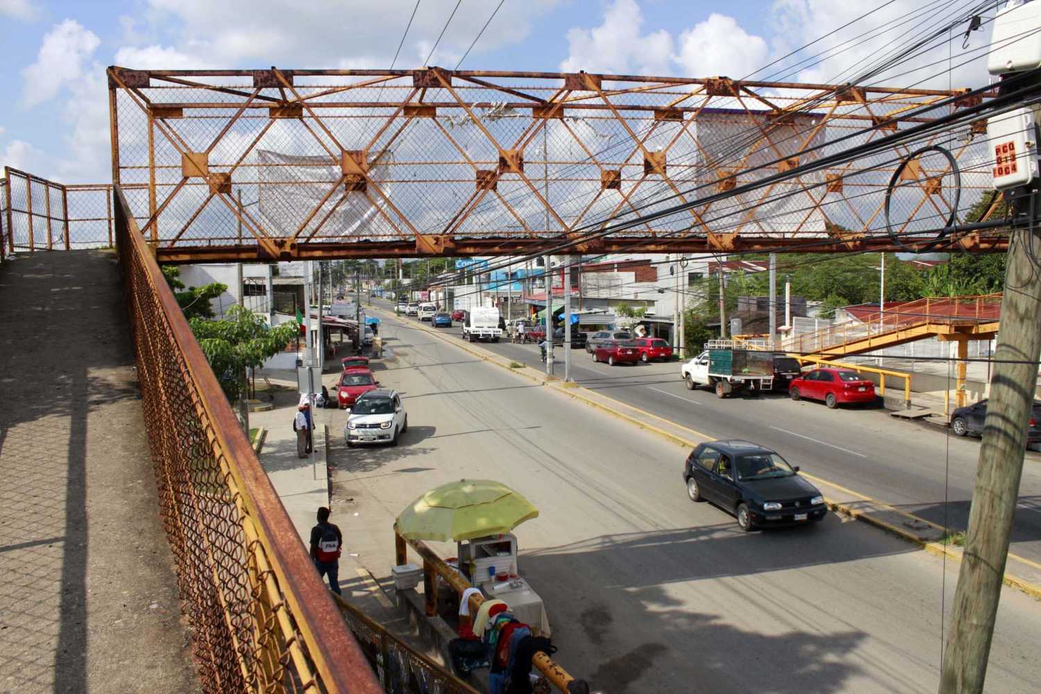 “Solo los chamacos del CECyTE y los de la secundaria, son los que pasan corriendo como locos sobre el puente, no se ponen a pensar que un día de estos algunos de ellos va a caer sobre la carretera, ahí si van a intervenir las autoridades”, dice la señora Micaela, quien se dedica a la venta de tacos por esa zona.