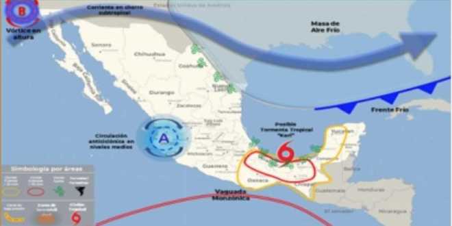 De acuerdo a los pronósticos de la conagua, el ciclón tropical “karl” se aproximará a la costa sur de Veracruz y occidente de Tabasco, por lo que podrá generar intensas rafagas de viento, asi como lluvias torrenciales a extraordinarias superiores a los 250 mm, principalmente sobre el centro y occidente de la entidad. Las lluvias mencionadas, así como las rachas de viento, podrían ocasionar caídas de ramas y árboles, daños en techos de vivienda deslizamientos, inundaciones aisladas, al igual que, oleajes de 2 a 3 metros y aumentos y desbordes en los niveles de los ríos y arroyos. Las condiciones de lluvias y vientos intensos podrán ocurrir durante el final de la noche y madrugada de hoy y persistir hasta la mañana del sábado 15.
