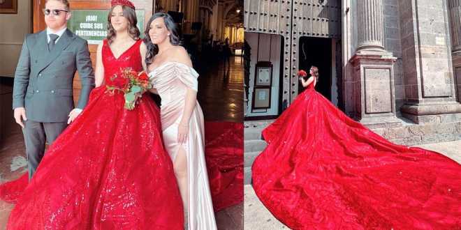 La misa habría iniciado alrededor de las 4:30 de la tarde; Emily Cinnamon usó un vestido totalmente rojo con aplicaciones de chaquira del diseñador Wil Medina.