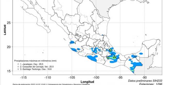 Por tanto, se prevén acumulados de precipitaciones menores a los 5.1 milímetros, sobre la Sierra, para el resto del estado, esta probabilidad podrá ser nula.