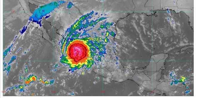 Durante la mañana provocará viento con rachas de 120 a 150 km/h y oleaje de 5 a 7 metros (m) de altura con marea de tormenta en costas de Nayarit y la costa norte de Jalisco; rachas de 100 a 120 km/h y oleaje de 4 a 6 m con marea de tormenta en la costa centro y sur de Jalisco, y rachas de 60 a 80 km/h con olas de 2 a 4 m en costas de Colima y el sur de Sinaloa.