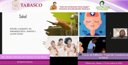 Como parte de la estrategia permanente de capacitación y sensibilización del IEM, en su Círculo de Reflexión de este lunes, la Maestra Sheila Manuela del Carmen García Pinzón, en su ponencia, “Creando Conciencia en la Salud”, instó a tener un estado completo de bienestar físico, mental y social, como una forma de experimentar el amor propio.