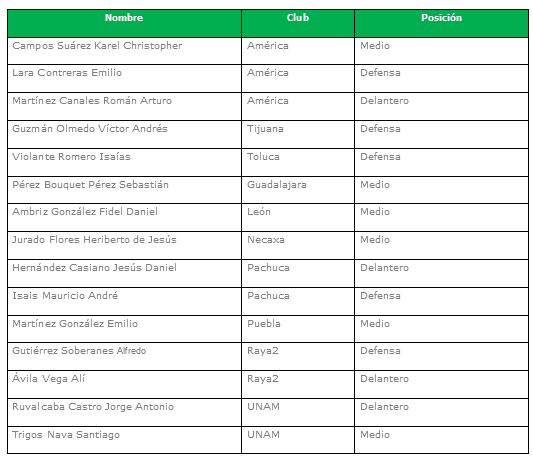 Serán 15 los jugadores convocados que apoyarán en toda la preparación del equipo mexicano antes y durante la justa mundialista.