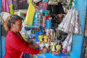 Mientras tanto, sigue sacando a la venta los artículos que le traen del estado de Puebla, que lo único que es de Tabasco son las velas sin humo, que este año están muy escazas.