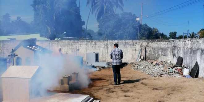En la víspera de la Celebración del Día de Muertos, la Secretaría de Salud a través de la Jurisdicción Sanitaria de Paraíso en coordinación con el Ayuntamiento de Paraíso, pusieron en marcha acciones de prevención y control del dengue en 17 panteones del municipio.