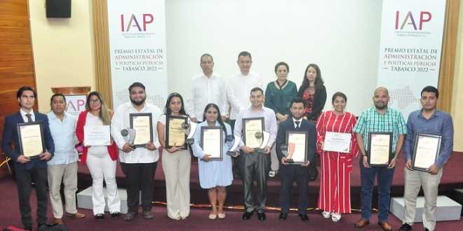 Con un reconocimiento al gobernador Carlos Manuel Merino Campos, así como al mandatario con licencia y hoy secretario de Gobernación, Adán Augusto López Hernández, por su compromiso con la profesionalización de una administración pública de excelencia en Tabasco, el Instituto de Administración Pública (IAP) entregó el Premio Estatal de Administración y Políticas Públicas 2022.
