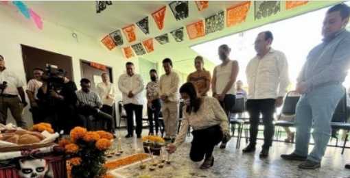 En compañía de los directores generales del Consejo de Ciencia y Tecnología del Estado de Tabasco (CCYTET) y del Cenepred, Gerardo Humberto Arévalo Reyes y Walter Chacón Escalante, respectivamente, explicó que como parte de nuestra identidad cultural, celebramos el “Día de Muertos” con la representación del tradicional altar.