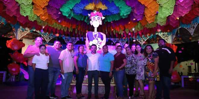 Anoche el presidente municipal, Eric Garrido inauguró el spot del kiosko del parque central, el cual fue adornado con luces de colores y una catrina representativa de Frida Kahlo.