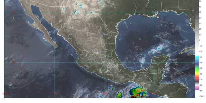 En contraste, un sistema de alta presión situado en niveles medios de la atmósfera, ocasionará ambiente vespertino de cálido a caluroso en entidades del noroeste, norte, occidente y centro de la República Mexicana, con temperaturas máximas de 35 a 40 grados Celsius en Guerrero, Jalisco, Michoacán, Nayarit, Oaxaca y Sinaloa, y de 30 a 35 grados Celsius en Campeche, Chiapas, Coahuila, Colima, Durango, Nuevo León, Quintana Roo, San Luis Potosí, Sonora, Tabasco, Tamaulipas, Veracruz y Yucatán.