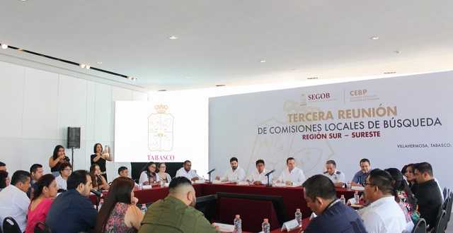 Al destacar que Tabasco ocupa el lugar número 31 del país con el menor índice de personas desaparecidas, el secretario de Gobierno, Guillermo Arturo del Rivero León, presidió este día la Tercera Reunión de Comisiones Locales de Búsqueda Región Sur-Sureste, en representación del gobernador Carlos Manuel Merino Campos.