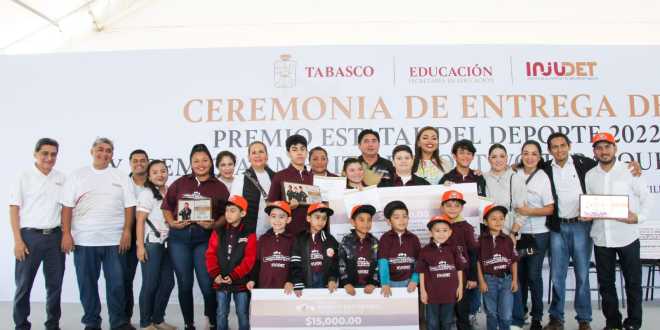 Fueron condecorados con el Premio Estatal del Deporte 2022: Daniela Guadalupe Mendoza de la Torre, como mejor deportista en la disciplina de levantamiento de pesas; Lucio Alberto Cerino de Dios, en paratletismo lanzamiento de jabalina; Gloria Sánchez Coliza, como entrenadora en levantamiento de pesas y en el fomento, protección e impulso de la práctica de los deportes, al Instituto de Seguridad Social del Estado de Tabasco (ISSET).
